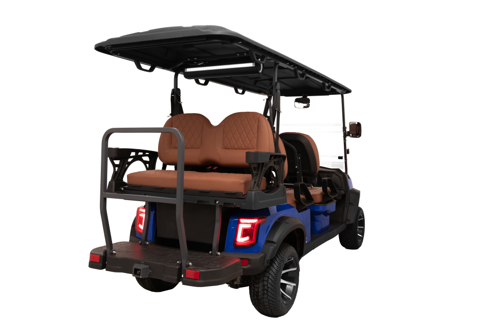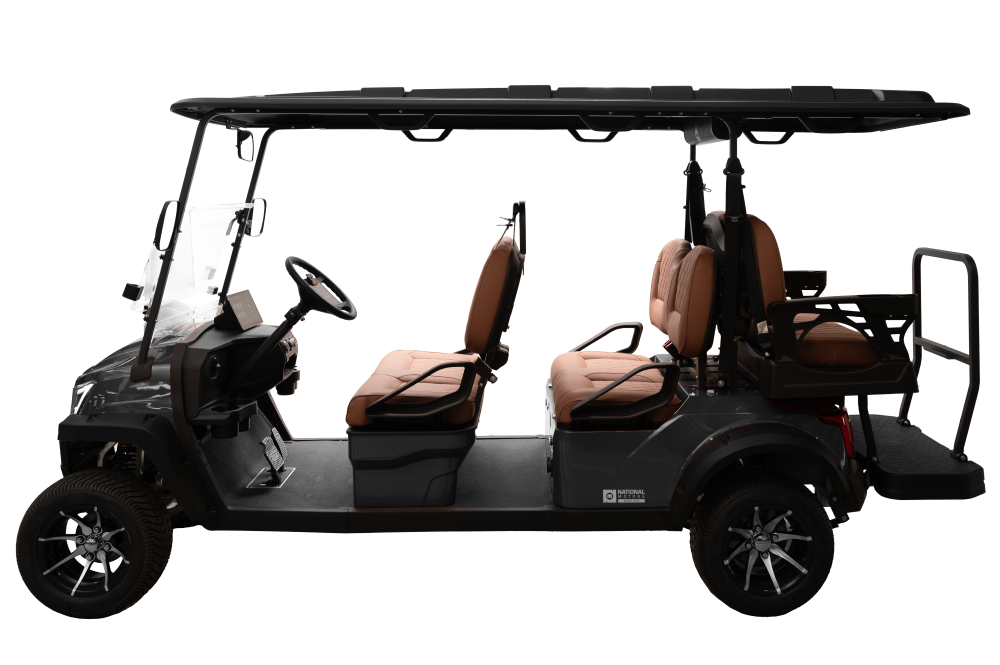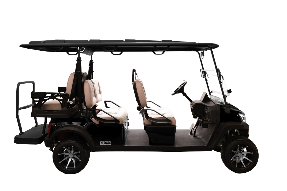 Agile, stylish, and effortless for daily resort or community runs. Drift On-Road pairs a 48V 5kW AC motor with a 105Ah lithium battery for up to 70 km per charge (4-seat), plus a 10″ CarPlay display with backup camera, keyless start, wireless charging, and a premium built-in soundbar. Cruise confidently at up to 45 km/h on 12″ aluminum rims—comfort and tech in a compact footprint. Available in 4 or 6 seats.