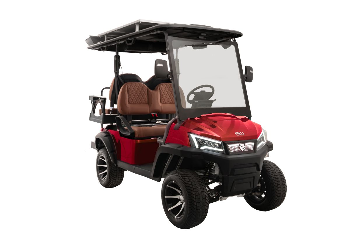 Our flagship adds eco-smart endurance with a self-charging solar roof (tops up roughly ~2.5%/hr in good sun) to stretch your day between plug-ins. The On-Road trim delivers quiet luxury with plush seating, safety glass with wipers, built-in refrigerator, and the full tech stack: 10″ CarPlay™ + camera, keyless start, wireless charging. Choose the Off-Road package for higher spindles, 14″ off-road tires, front steel defender, and stepboards—ideal for resorts, campuses, farms, and remote properties. A robust 150Ah lithium battery and four-wheel hydraulic discs with EMB parking underline confident, low-maintenance ownership.